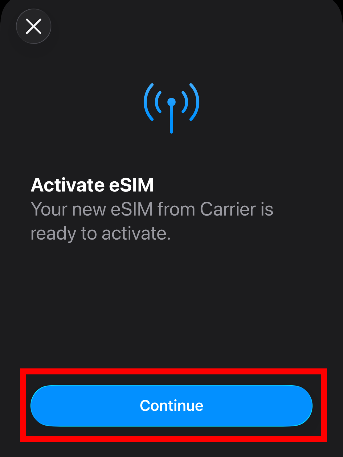 Your smartphone will detect that an eSIM is trying to be installed and it will ask your permission. Press "Continue" to proceed.