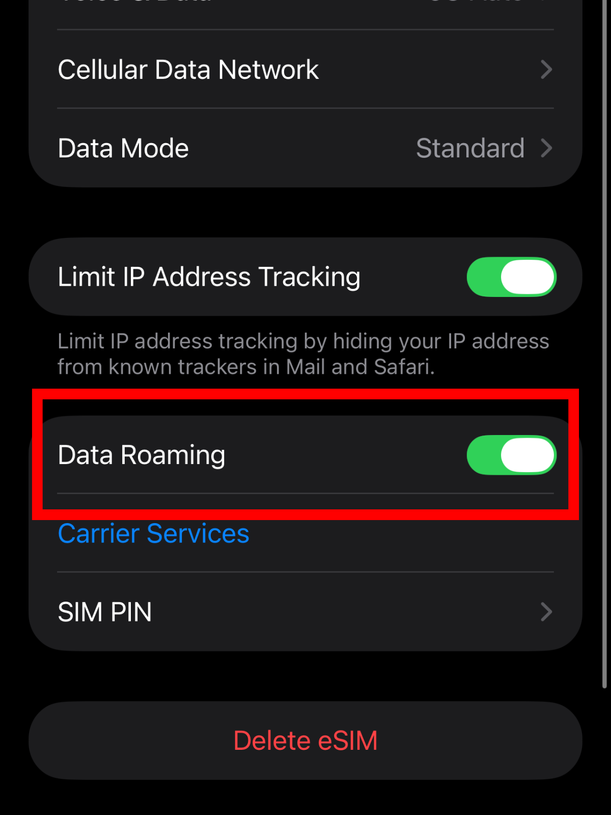 Tip: you can turn off Data Roaming on your primary line while traveling to avoid roaming fees. You can also turn on "WiFi Calling" on your primary line to keep using your phone number through your eSIM's data.